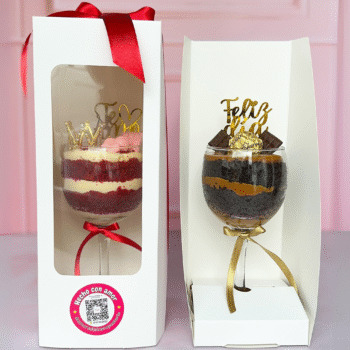 La Copa Cake es elegante y deliciosa, servida en una copa de vidrio y presentado en una caja con moño, lista para regalar o sorprender en cualquier ocasión. Cada copa viene con capas irresistibles de sabor, dulce, chocolates y un topper personalizado.